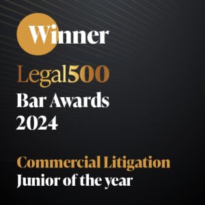 - 2022: Shortlisted (final three) Commercial Litigation Junior of the Year (Chambers Bar Awards)